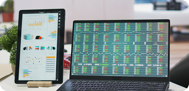 Professional analyzing stock charts with AI stock screener for paradigm-shift investing